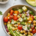 This salad has quickly become a favorite in my home because it’s not only quick and easy to prepare but also incredibly satisfying. The combination of creamy avocado, salty feta, and hearty chickpeas creates a beautiful medley of textures and flavors that everyone enjoys!
