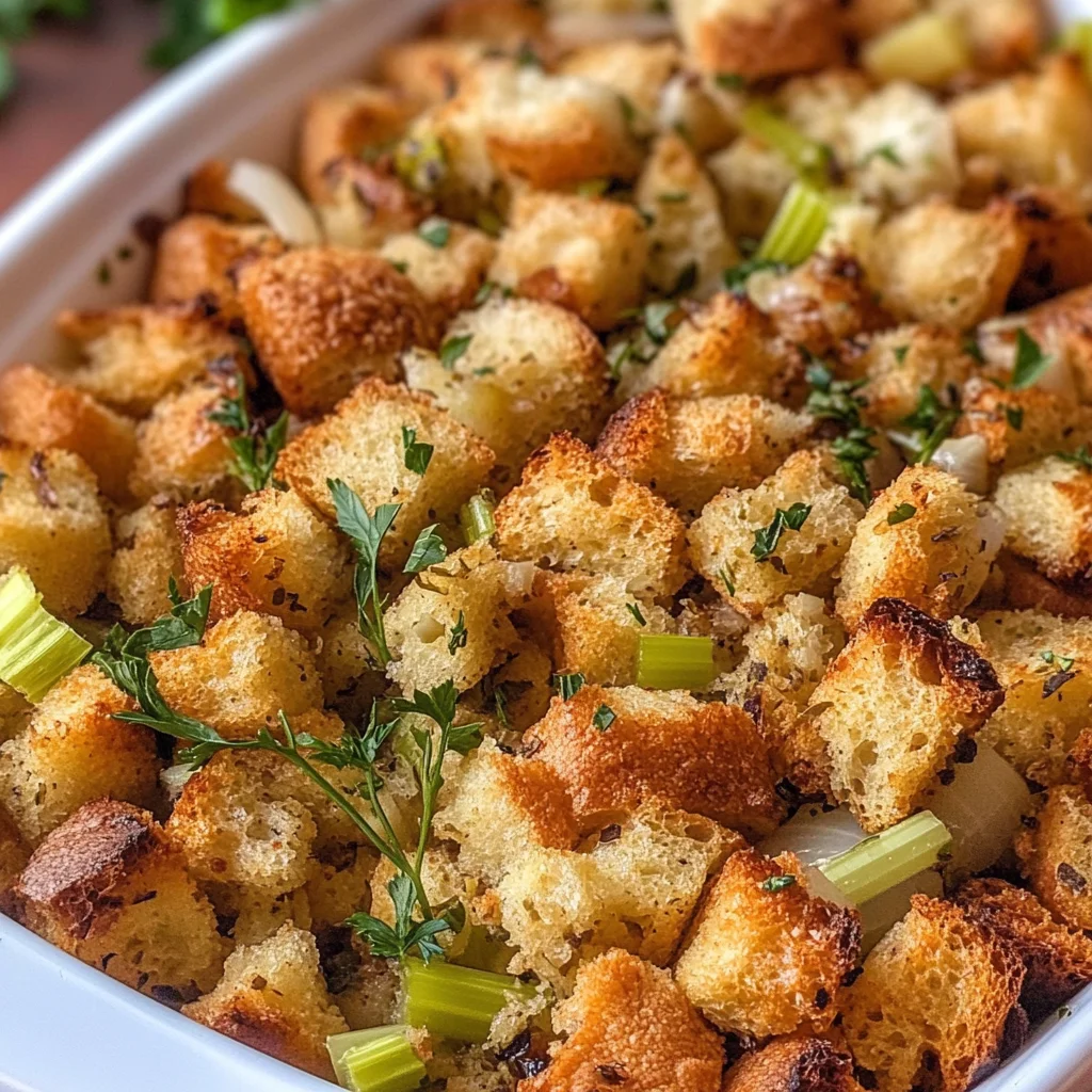 - Bake it Just Right: Cover your stuffing with foil during the first half of baking to retain moisture, then uncover it for the last 20 minutes. This allows for a deliciously crispy top while keeping the inside moist and fluffy.