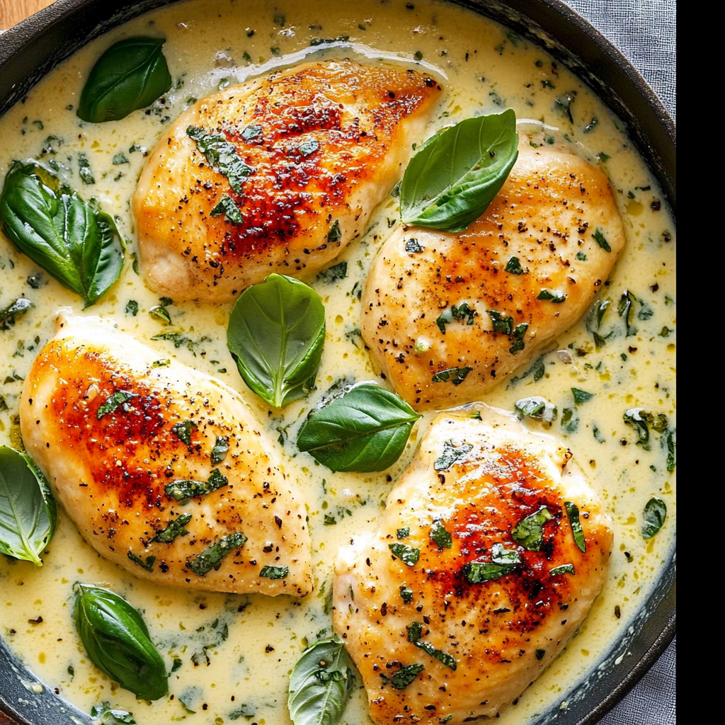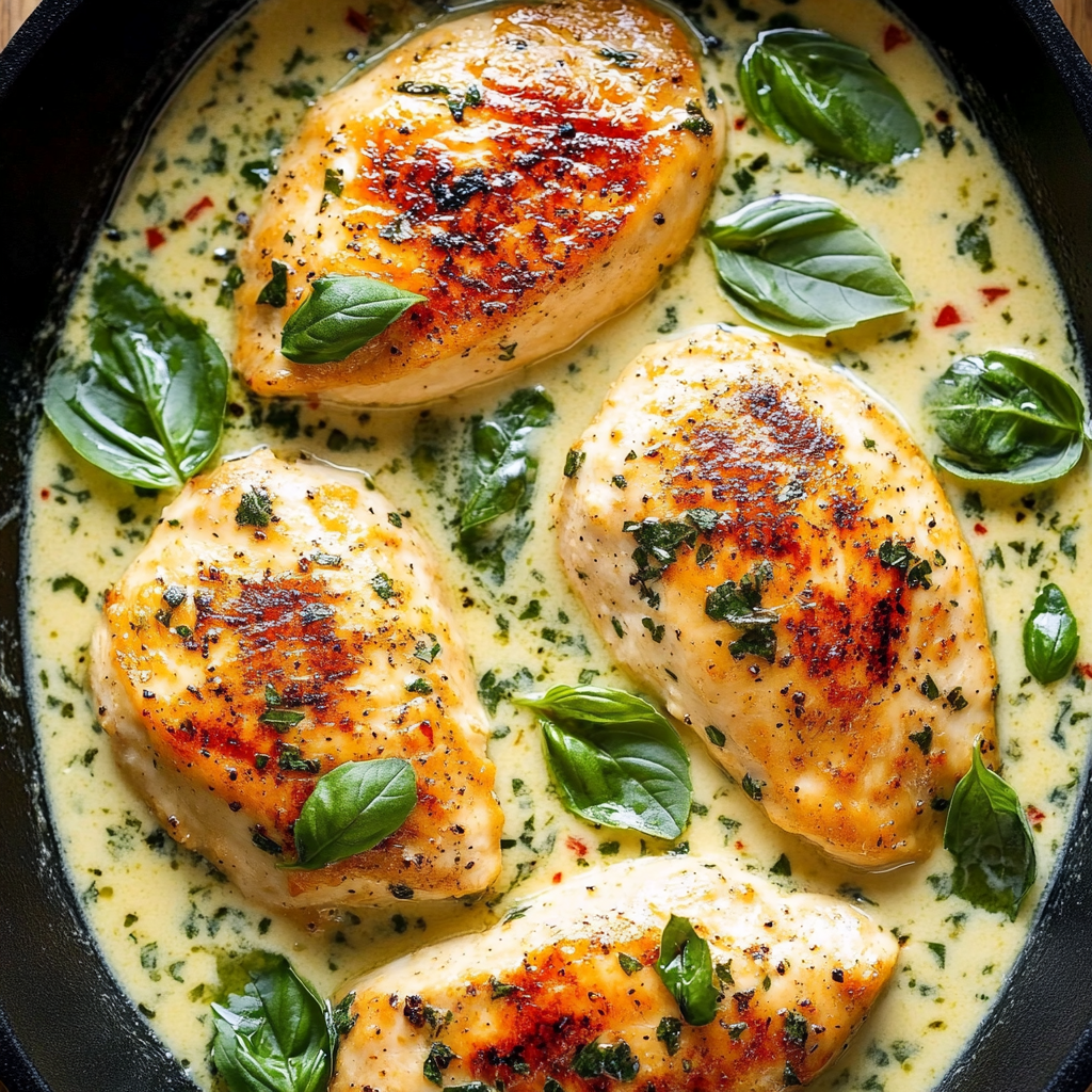 Mozzarella Chicken in Basil Cream Sauce