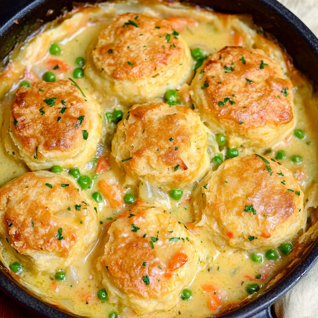 Pop your assembled pot pie into the oven and bake for about 20–25 minutes until those biscuits are golden brown and cooked through. The aroma wafting through your kitchen will be absolutely irresistible!